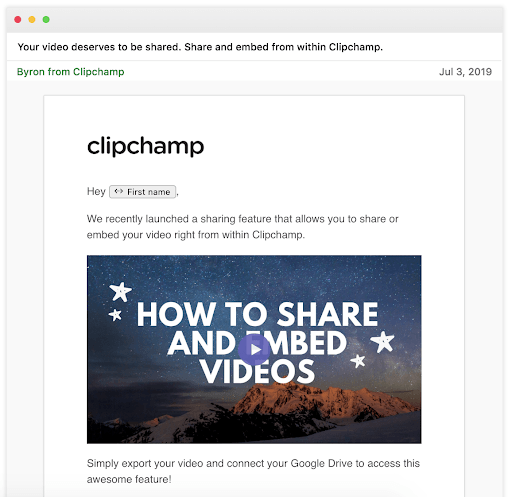 Eine Studie ergab, dass 11,4% der Leads, die sich mit einem Video beschäftigen, einen Kauf tätigen. Und je länger ein Zuschauer ein Video betrachtet, desto wahrscheinlicher ist es, dass er zum Käufer konvertiert. Wie du weißt, konvertieren die meisten Leads nicht. Wenn du jedoch ein Video in eine E-Mail integrierst, um alte, nicht konvertierte Leads wieder zu aktivieren, könnte das jedoch zu einer weiteren Konversionsrate von 0,29% führen, und 6,5% derjenigen, die das gesamte Video sehen, werden zu Kunden.