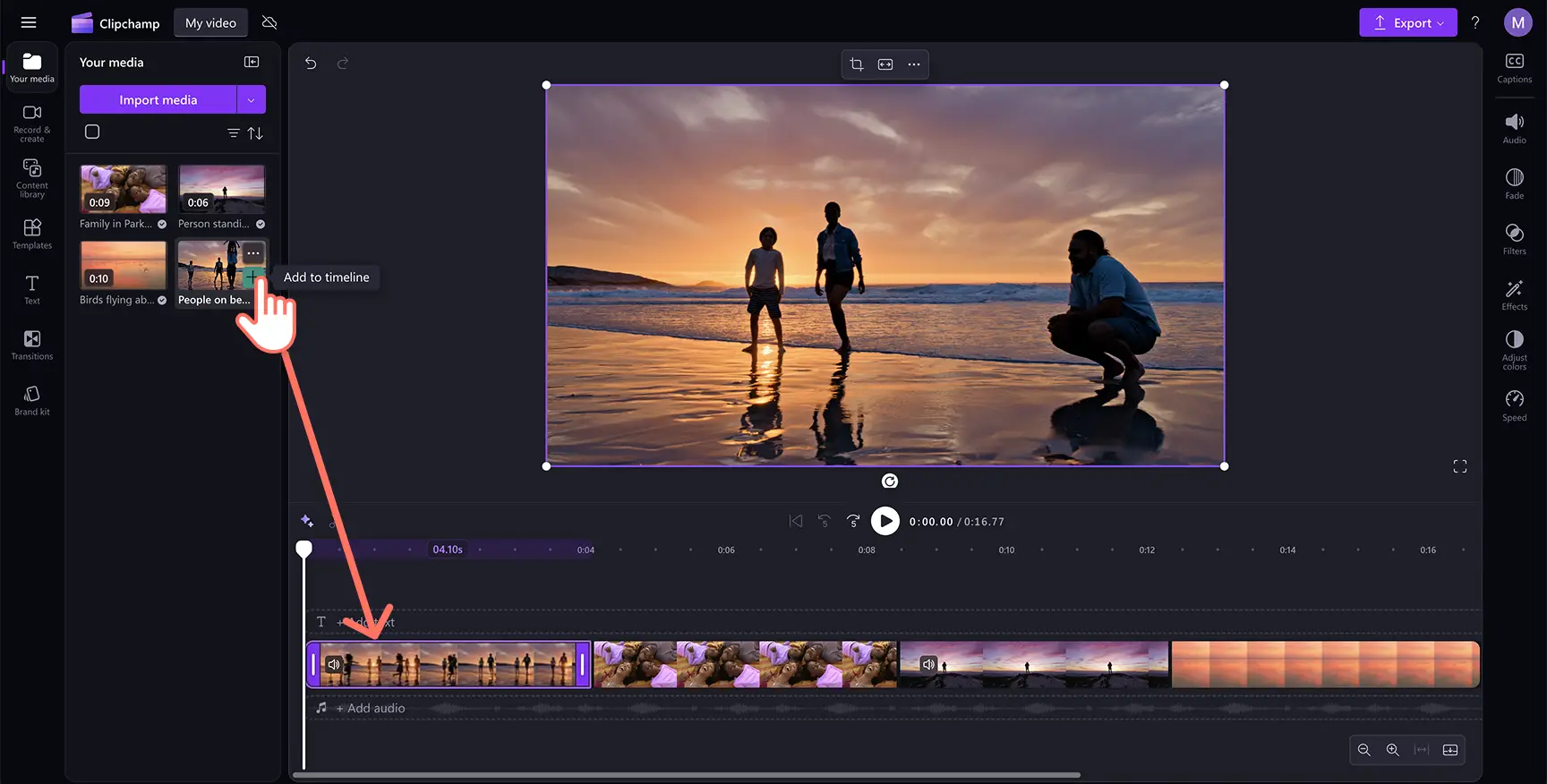 ¿Necesitas crear un video de presentación rápidamente, como un vídeo Reel de un viaje o un video de cumpleaños para compartir con el grupo de chat? Con el editor de video basado en IA en Clipchamp, puedes crear un video de apariencia profesional en solo unos clics.